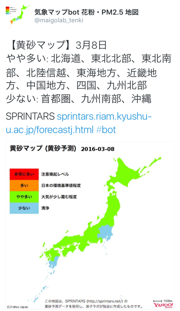 気象マップbotに黄砂マップ(黄砂予測)をツイートする機能を追加しました